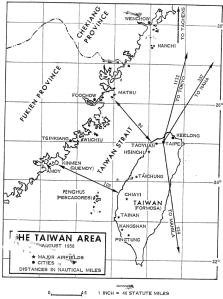 An Air Force History of the Taiwan Crisis, obtained by a National Security Archive lawsuit, provides further information on this nuclear decision. At the height of the crisis, the Joint Chiefs of Staff approached Eisenhower “for permission to use nuclear weapons at the outset of hostilities,” the President overruled them and clarified that “under no circumstances would these weapons be used without his approval.” China did not invade the islands, but tensions between the PRC and Taiwan remain to this day.