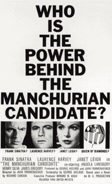 Poster for the 1962 hypno-assassination thriller, The Manchurian Candidate.