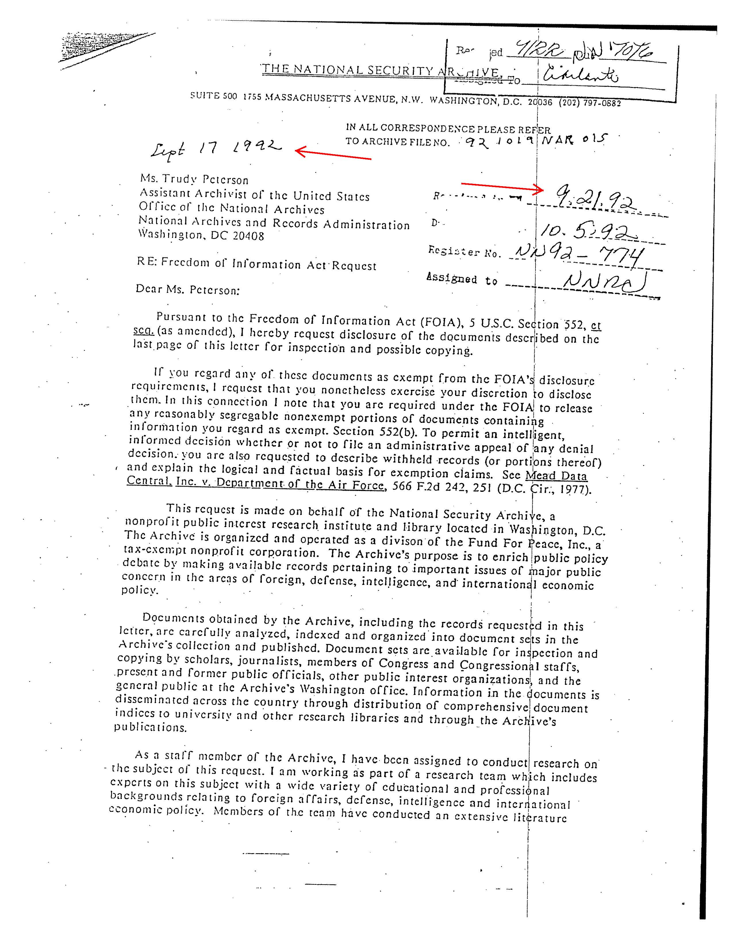 […] This post was mentioned on Twitter by NatlSecurityArchive and brian e., Áine MacDermot. Áine MacDermot said: RT @NSArchive: Document Friday for @DarrellIssa: An 18 year-old #foia request!! http://bit.ly/dMoF7a […]