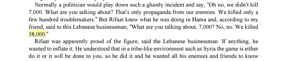 In 1982 Hafez al-Assad, the current president’s father, orchestrated an attack on Hama, a city in Western Syria. The ‘scorched earth’ style attack killed between 17,000 and 40,000 – predominately Sunni – Syrians. Shortly after the attack Hafez’s brother, Syrian Army General Rifaat al-Assad, bragged that the total was 38,000 dead. The Hama Massacre is considered to be one of the worst atrocities by any dictator against his own people in modern history.
