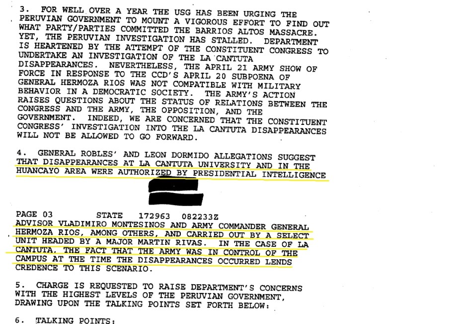 Declassified U.S. government document used as evidence in the Fujimori trial. So see full PDF of document, see: http://bit.ly/GI7GQw