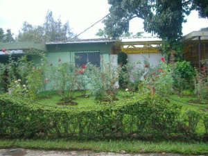This is in front of the home where the 6 martyred Jesuits lived, along with, that night, their housekeeper and her 16-year old daughter. The rose bushes commemorate their lives and physically mark where the murders took place. Photo by Kristin Sekerci