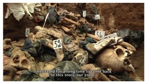 still from film, “The Echo of Pain of the Many” – exhumations of mass graves