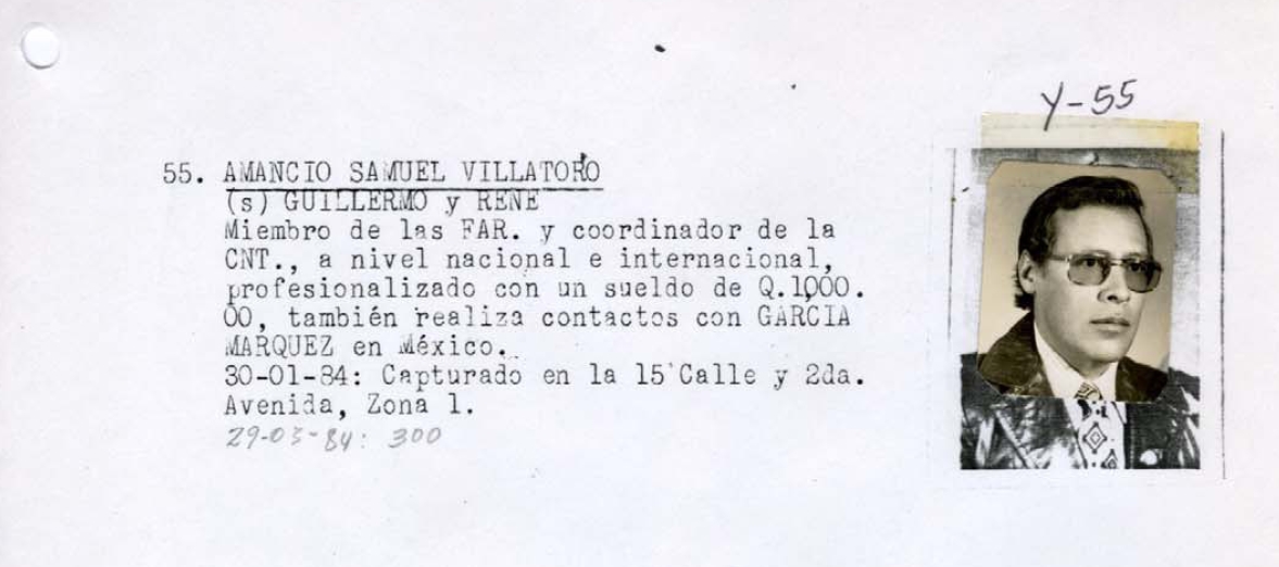 Amancio Samuel Villatoro (case #55), son of Samuel Villatoro