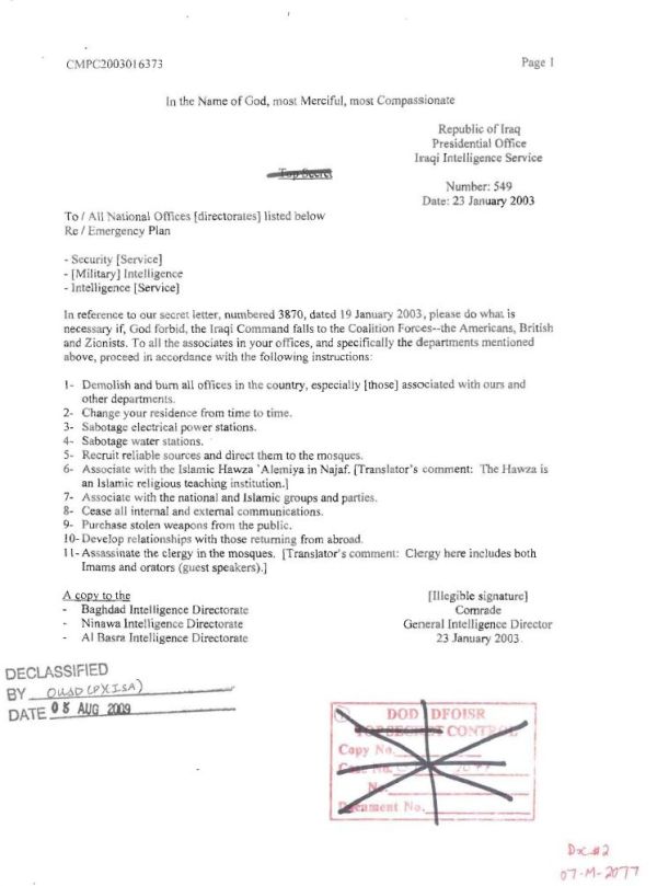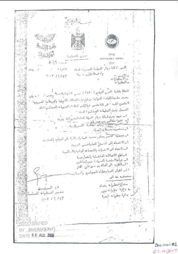 2 responses to “Document Friday: Declassified Iraqi Memo Points to the Genesis of the Insurgency”