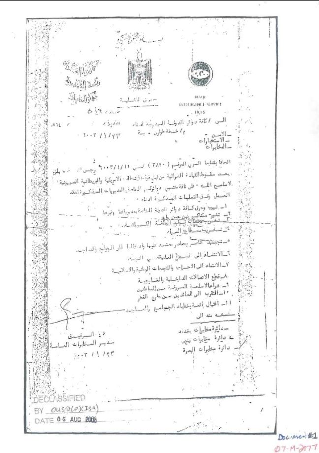 Document Friday: Declassified Iraqi Memo Points to the Genesis of the Insurgency