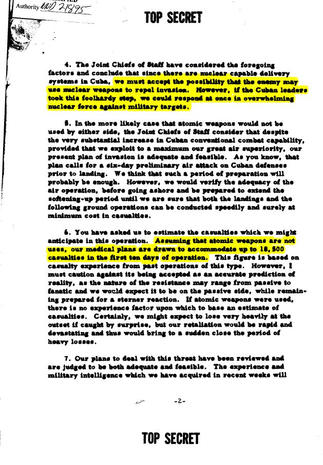 New Documents Show US Military Estimated Invasion of Cuba Would Cost 18,500 US Casualties…. Assuming the Cubans Wouldn’t Take the “Foolhardy Step” of Using Nukes.