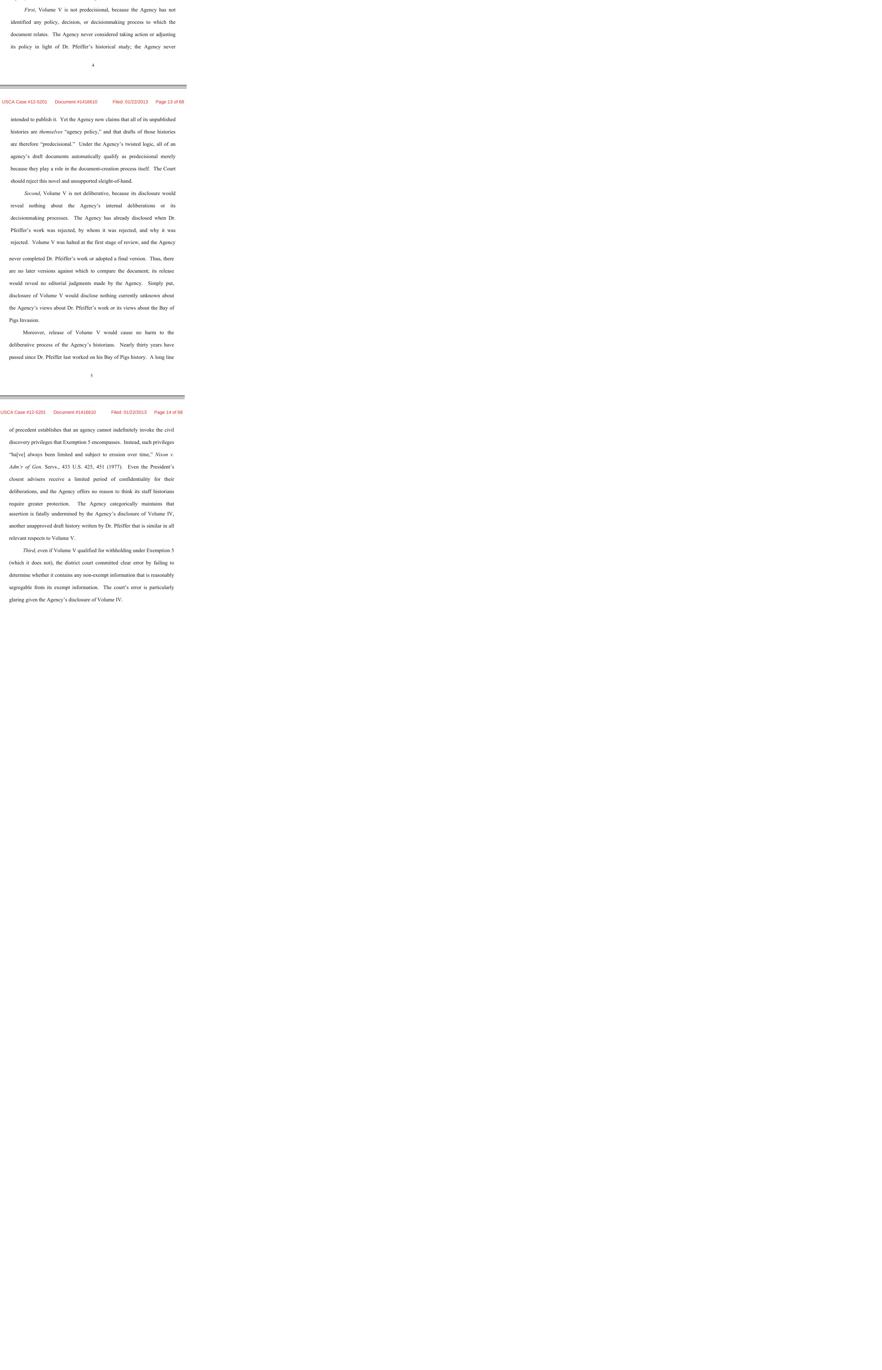 National Security Archive Files Appeal Explaining Why CIA is Dead Wrong to Claim The “Predecisional” Exemption for Its History of the 1961 Bay of Pigs Invasion.