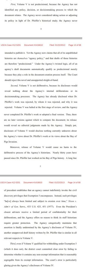 National Security Archive Files Appeal Explaining Why CIA is Dead Wrong to Claim The “Predecisional” Exemption for Its History of the 1961 Bay of Pigs Invasion.
