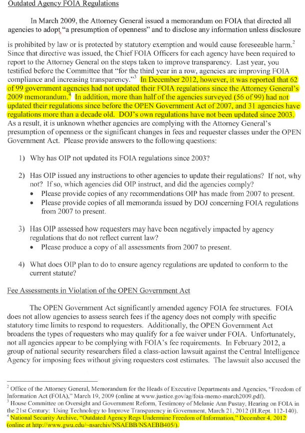 Congress Seeks Explanation from DOJ on Outdated Agency FOIA Regulations