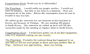 An excerpt from the conversation between President Johnson and Gerald Ford regarding the Pueblo.