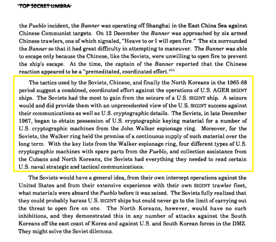 With the Pueblo’s cryptologic material, “the Soviets had everything they needed to read certain U.S. naval strategic and tactical communications.”