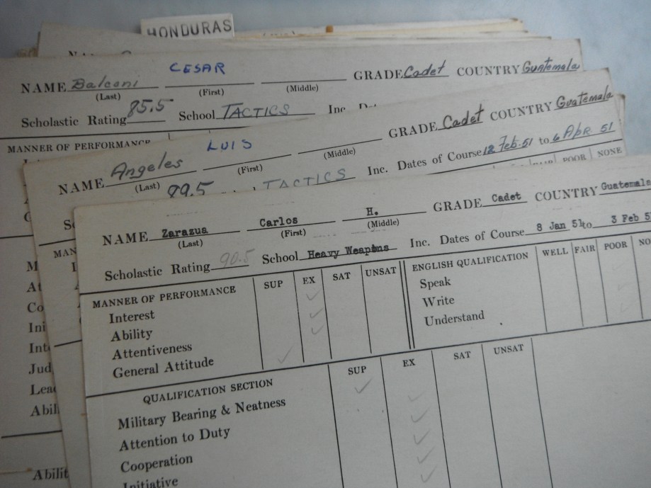 Academic Records detailed courses, dates, grades, and narrative evaluations of graduates, many of whom went on to become military dictators and human rights violators.