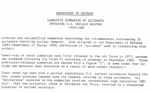 The Department of Defense List of 32 “Accidents Involving Nuclear Weapons”