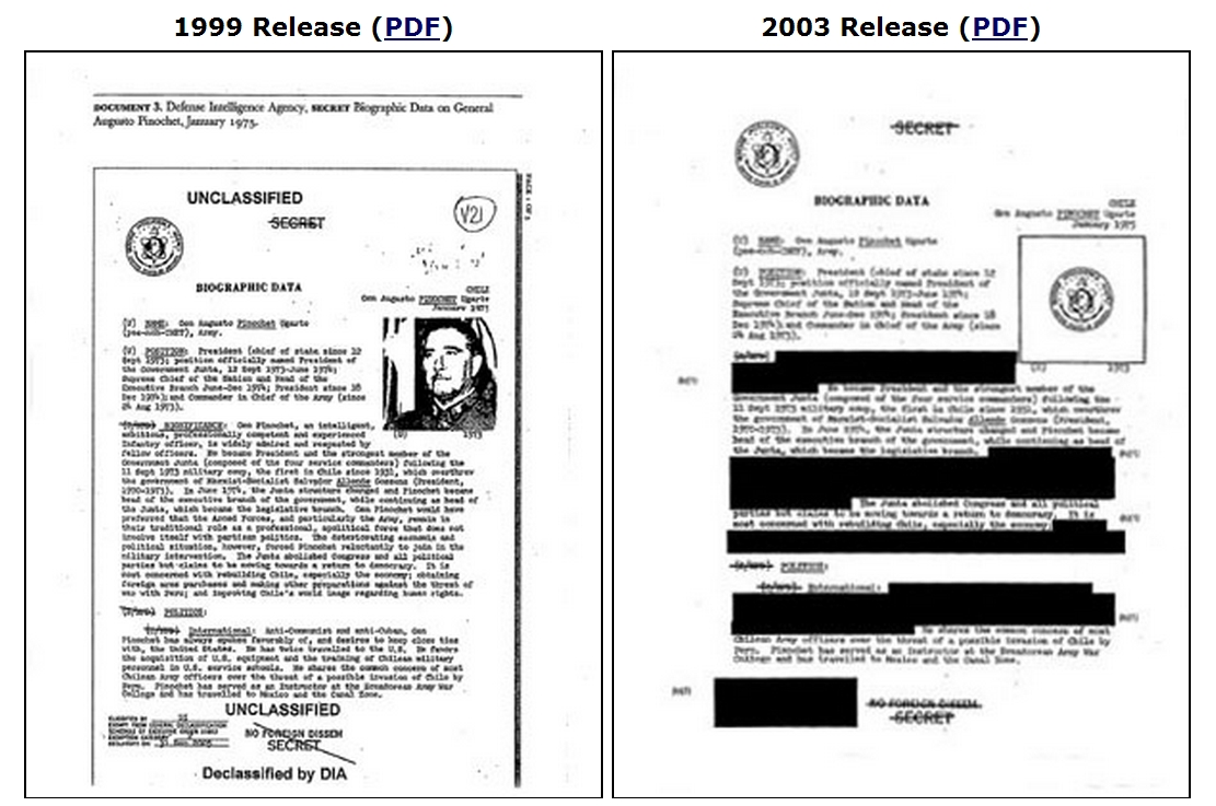 But not everyone was as pleased with Litt’s commitments as I was. One professional declassifier, speaking as an individual, not a government employee, was quick to slam Litt’s proposals. The declassifier claimed that he did not have the authority to declassify documents which were technically “properly classified” –and did not want it. It, apparently, was just fine with him to keep the Jupiters in Turkey, century-old invisible ink recipes, even Pinochet’s fondness of Pisco Sours, hidden from the public as “national security secrets.”