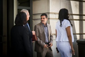 Sarhan Deab Abdul Moniem leaving court on Tuesday after testifying in the Blackwater trial. Credit Gabriella Demczuk/The New York Times
