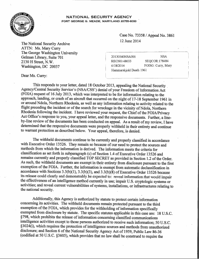 National Security Agency Refuses to Release Documents on Mysterious Death of UN Secretary-General Over 50 Years Ago