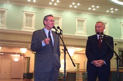umsfeld (left) and Uzbekistani President Islom Karimov speak to reporters in Tashkent, Uzbekistan. Photo by Sgt. 1st Class Kathleen T. Rhem, USA.