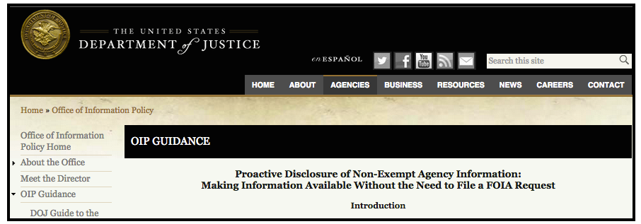 The Department of Justice’s Office of Information Policy (OIP) released good guidance on proactive disclosure this week, echoing many of the sentiments expressed in the National Security Archive’s most recent FOIA Audit. The Archive’s Audit tackled many federal agencies’ failure to meet the 1996 Electronic Freedom of Information Act Amendments (E-FOIA) requirement that mandates agencies post records already processed in response to FOIA requests, and records “likely to become the subject of subsequent requests,” online. The Audit argued that fulfilling this requirement would not only save agencies time and money, but “is the only tenable solution to FOIA backlogs and delays.”
