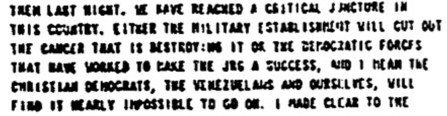 ![“We have reached a critical juncture in this country. Either the military establishment will cut out the cancer that is destroying it or the democratic forces that have worked to make the [government] a success, and I mean the Christian Democrats, the Venezuelans and ourselves, will find it impossible to go on.”](https://unredacted.com/wp-content/uploads/2015/04/untitled.png?w=1024&h=266)