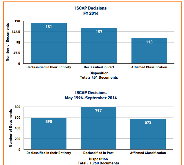 ISCAP is composed of senior-level representatives appointed by the Departments of State, Defense, and Justice, the National Archives, the Office of the Director of National Intelligence, and the National Security Advisor. These senior representatives review classified documents, and vote to determine if some or all of the information agencies have argued must remain secret can be released without harming US national security –majority vote rules.
