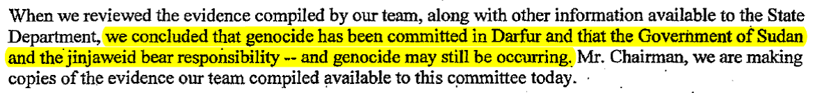 It wasn’t until September 9, 2004, that U.S. Secretary of State Colin Powell declared the atrocities in Darfur a genocide during a hearing before the Senate Foreign Relations Committee.