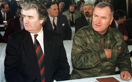 Radovan Karadžić (left) with former Bosnian Serb military leader Ratko Mladić, who is currently on trial before the ICTY. AP photo.