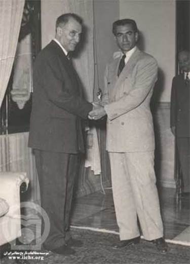 The Shah (right) with Fazlollah Zahedi, Mosaddeq’s replacement as prime minister. (www.iichs.org)