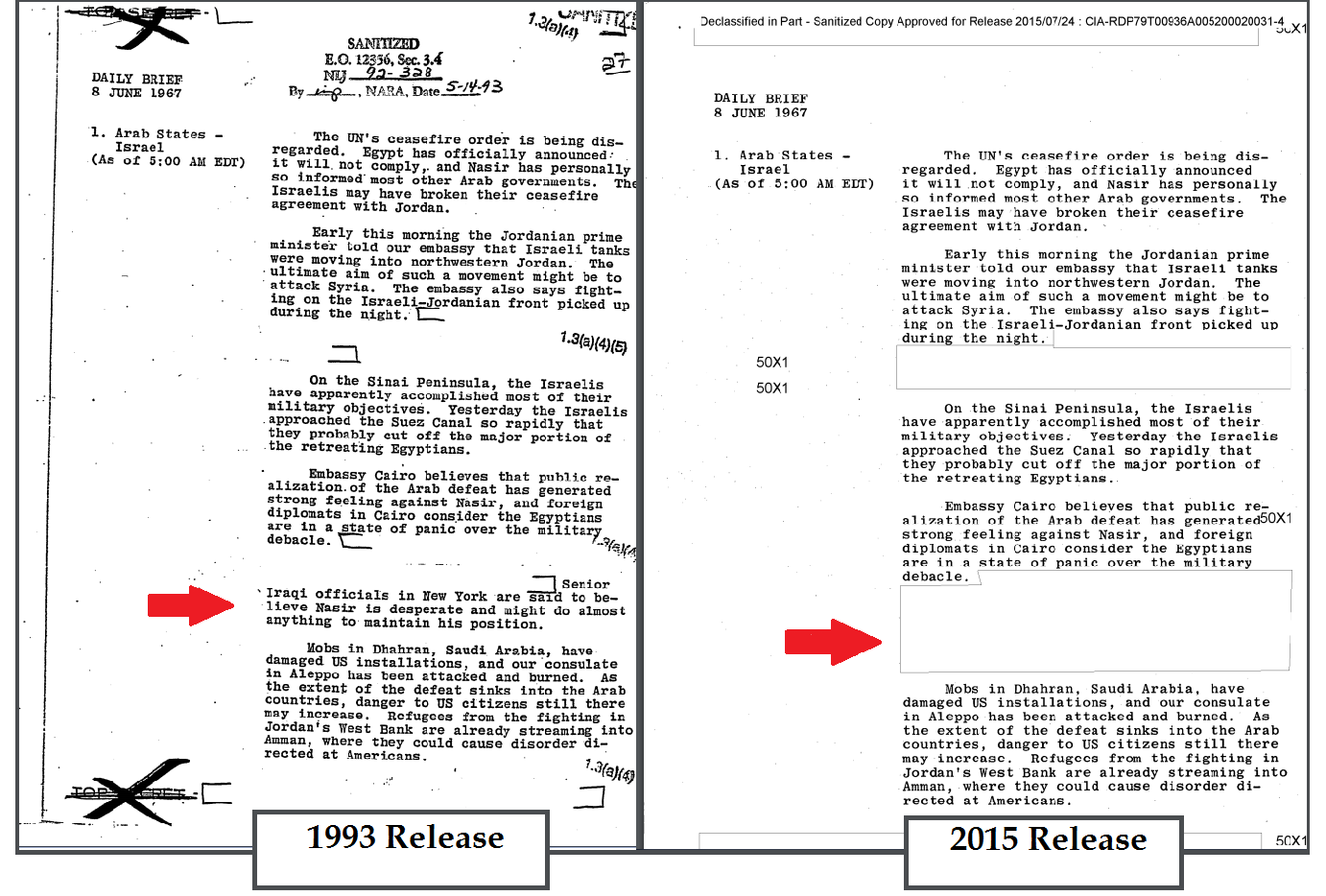 In other words, I’m about to show you some documents that senior government authorities with the power to say so insist are classified. Yet at the same time, these very same documents have been declassified by senior government authorities also with the power to say so. All of which is to say, don’t believe them until you see for yourself. Always ask, where’s the damage?