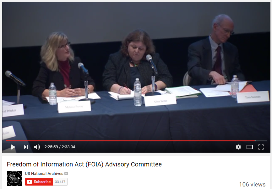 The FOIA Federal Advisory Committee held its first meeting of 2017 today. Chaired by the Office of Government Information Services’ new head, Alina Semo, it focused on presentations from its three subcommittees: proactive disclosures, efficiencies and resources, and searches.