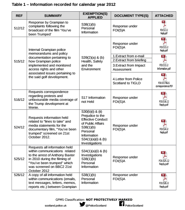 Scottish FOI Releases Shed Light on Local Law Enforcement Dealings with Trump Team