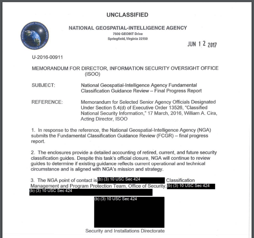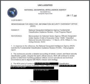 FOIA Request Helps Show What Steps NGA Taking to Reduce Overclassification: FRINFORMSUM 9/14/2017