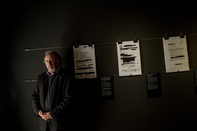 Peter Kornbluh curated the exhibition, which includes redacted documents and C.I.A. memos. Tomas Munita for The New York Times
