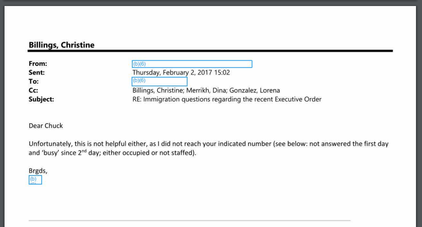 The records, released in the course of a FOIA lawsuit, show the department activated its crisis action team (CAT) to deal with confusion at airports and questions and complaints from lawmakers and airlines. Strained DHS officials complained of receiving contradictory guidance from the Trump administration, and “DHS emails show that officials dealing with airlines and airports were told to direct all questions to a single phone number in Washington, D.C., but at least one airline executive said the hotline was unresponsive.”