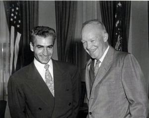 Shah Mohammed Reza Pahlavi of Iran and President Dwight D. Eisenhower – all smiles in the early years following the ouster of Prime Minister Mohammad Mosaddeq. (RFE web site)
