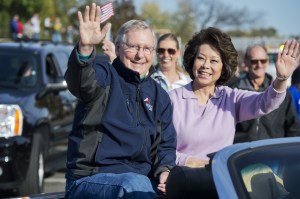 Sen. Mitch McConnell and Transportation Secretary Elaine Chao at a parade in Madisonville, Ky., on Nov. 2, 2014. | Tom Williams/CQ Roll Call