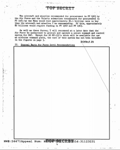 » “Recommended Long Range Nuclear Delivery Forces, 1963-1967″ – page 4, almost entirely redacted.